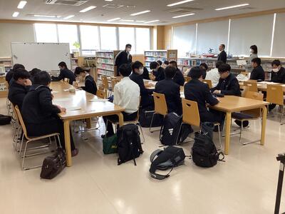 4月20日放課後、図書委員長の司会のもと、今年度の図書館運営業務について話し合いました。今年は、古典芸能鑑賞を開催します。