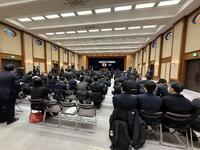 さらに今月15日(木)から60日間の『長期航海実習(第3次航海)』に向かう、機関工学類型2年生及び専攻科1年生の『第3次航海 乗船式』が行われました!航海実習に臨む生徒を代表し、機関工学類型2年 杉浦士騎くんが力強く『決意表明』を行い、校長先生から『激励の言葉』をいただきました!生徒たちは、1月12日(月)に宮城丸に乗船(航海準備)、15日(木)に『出港式』を行い石巻新漁港を出港、その後操業実習(マグロ延縄実習)を行った後、3月1日(日)~5日(木)に沖縄県那覇港に寄港。3月12日(木)に石巻新漁港に帰港する予定です。