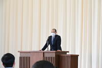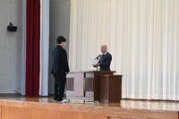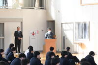 2月27日(金)『卒業式』を前に卒業式予行を実施。その後、同窓会長 阿部喜久男様をお迎えし、本校を卒業した教職員が見守るなか、『同窓会入会式』を行いました! 同窓会長からは同窓会への歓迎の言葉をいただきました!