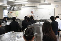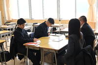 2月25日(水)生物環境科1年生が総合実習で「牡蠣剥き」の体験をしました。地元の主要な産業である牡蠣養殖を理解するための実習で生徒たちは2班に分かれ、牡蠣についての学習と、実際の牡蠣剥きに挑戦しました。数人の生徒は何度か体験したことはあるものの、たくさんある殻付きの牡蠣を目の前にして戸惑っていました。実際に剥いて見せ貝柱の位置を確認したり、牡蠣剥きナイフの使い方を知らせたりしていざ実践です。牡蠣殻の間にうまくナイフが入らなかったり、中の身を傷つけたりを繰り返しながらも挑戦を続けることで、殆どの生徒が後半は上手に牡蠣を剥くことができるようになりました。最後は実習終わりの楽しみ、自分たちが剥いた牡蠣を牡蠣汁やフライパンで調理した焼き牡蠣にして食べました。苦手な生徒も食べてみて「美味しかった」という声が多く、実習の充実感を味わえたようでした。