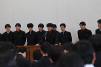 さらに今月15日(木)から60日間の『長期航海実習(第3次航海)』に向かう、機関工学類型2年生及び専攻科1年生の『第3次航海 乗船式』が行われました!航海実習に臨む生徒を代表し、機関工学類型2年 杉浦士騎くんが力強く『決意表明』を行い、校長先生から『激励の言葉』をいただきました!生徒たちは、1月12日(月)に宮城丸に乗船(航海準備)、15日(木)に『出港式』を行い石巻新漁港を出港、その後操業実習(マグロ延縄実習)を行った後、3月1日(日)~5日(木)に沖縄県那覇港に寄港。3月12日(木)に石巻新漁港に帰港する予定です。