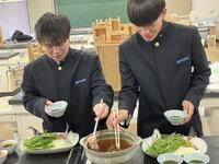 2月25日(水)生物環境科1年生が総合実習で「牡蠣剥き」の体験をしました。地元の主要な産業である牡蠣養殖を理解するための実習で生徒たちは2班に分かれ、牡蠣についての学習と、実際の牡蠣剥きに挑戦しました。数人の生徒は何度か体験したことはあるものの、たくさんある殻付きの牡蠣を目の前にして戸惑っていました。実際に剥いて見せ貝柱の位置を確認したり、牡蠣剥きナイフの使い方を知らせたりしていざ実践です。牡蠣殻の間にうまくナイフが入らなかったり、中の身を傷つけたりを繰り返しながらも挑戦を続けることで、殆どの生徒が後半は上手に牡蠣を剥くことができるようになりました。最後は実習終わりの楽しみ、自分たちが剥いた牡蠣を牡蠣汁やフライパンで調理した焼き牡蠣にして食べました。苦手な生徒も食べてみて「美味しかった」という声が多く、実習の充実感を味わえたようでした。